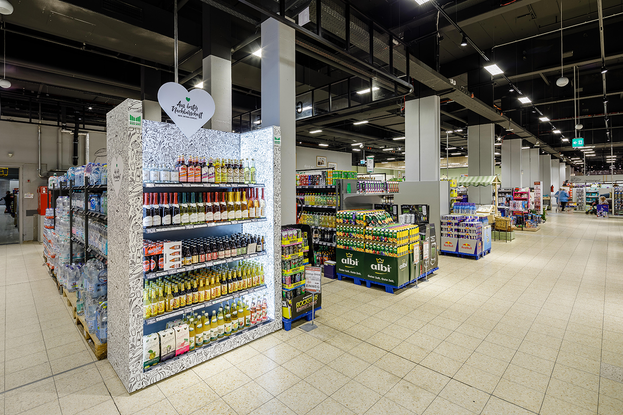 Von A wie Apfelsaft bis Z wie Zwetschgenwasser – unser eigener Getränkemarkt bietet Ihnen das volle Sortiment.